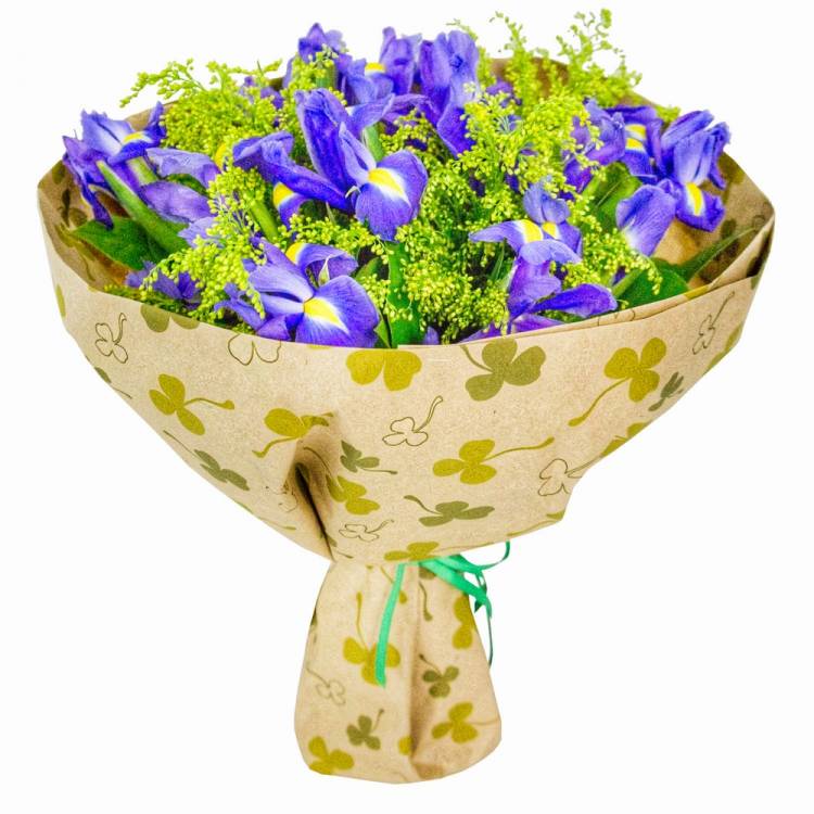 Оригинальная, весенняя композиция из фиолетовых ирисов и ярко-желтого солидаго никого не оставит равнодушным, добавив красок в серые будничные дни. Притягательный букет их хрупких цветов послужит идеальным решением для людей, которые умеют радоваться жизни, несут в себе весну и тепло. Такой цветочный подарок способен поднять настроение в непростую минуту, принести много положительных эмоций, восхитить своей красотой и невероятным ароматом.